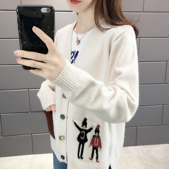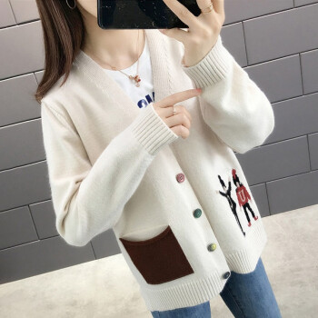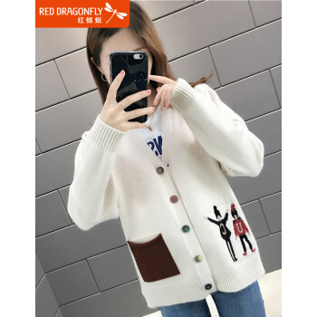 红蜻蜓 慵懒风毛衣开衫女2020秋季新款时尚女装韩版针织外套女上衣潮百搭宽松针织衫 WL733 米白色 均码 |