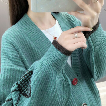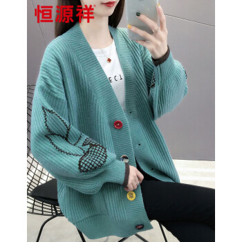 恒源祥针织衫女2020秋季新品时尚慵懒风外搭开衫女灯笼袖刺绣针织衫女韩版宽松毛衣外套女0215 湖蓝 请拍正确尺码 |