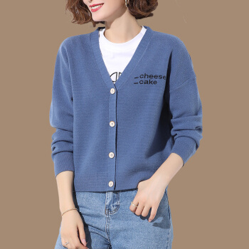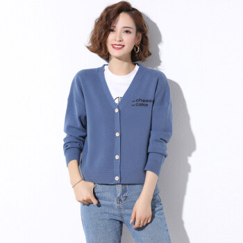 歌米拉 针织衫女开衫薄款春秋装2020年新款秋季洋气女士毛衣外套外搭短款 蓝色 M |