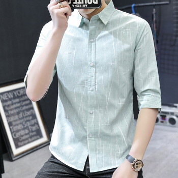 ED.HD衬衫男2020夏季新款短袖衬衫男士五分袖衬衣时尚休闲韩版男装潮流衣服 6028浅灰色 XL |