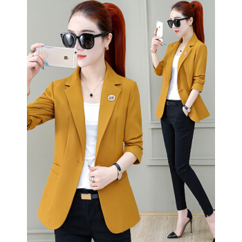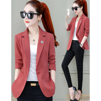 婪澈小西装女2020年春秋女装新款女韩版修身显瘦纯色外套女设计感小众气质长袖西服 雪松红 L |