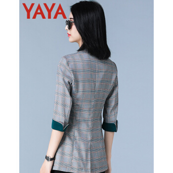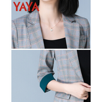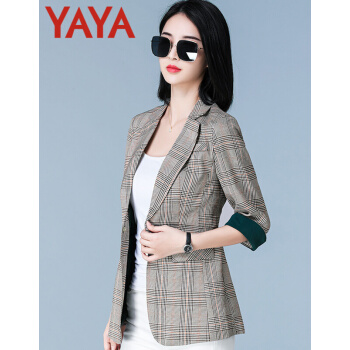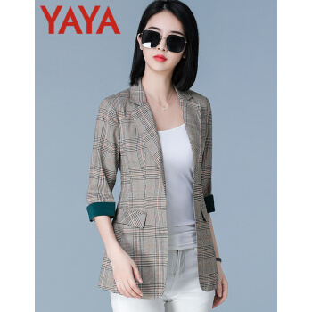 鸭鸭服饰yaya小西装女2020女装秋季新款外套女春秋流行韩版女百搭上衣七分袖 咖啡格 L |