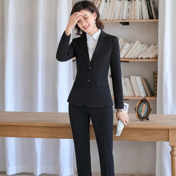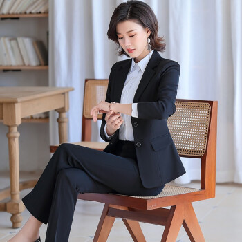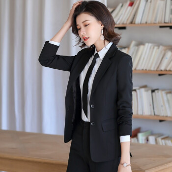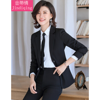 金蒂情 新款小西装职业装女装套装工作服韩版时尚气质正装大学生面试西服女 黑色西装+西裤(两粒扣) L(建议100-110斤) |