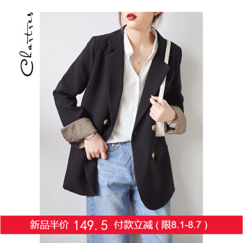 【新品5折 149.5元】黑色小西装女 2020秋韩版小外套小个子网红短款上衣休闲西服外套X445 黑色 M |