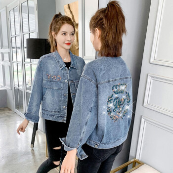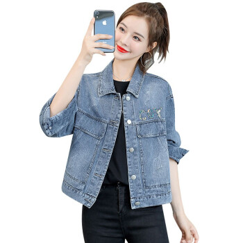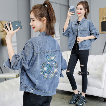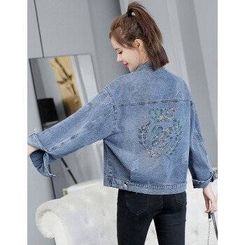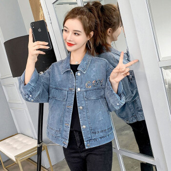 淑蔓婷牛仔外套女春秋短款2020新款港味学生复古韩版宽松亮片牛仔衣夹克 8770图片色 M |