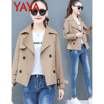 鸭鸭服饰yaya小个子外套女春秋季2020新款夹克休闲上衣春秋装百搭短款女士风衣 卡其色 L |