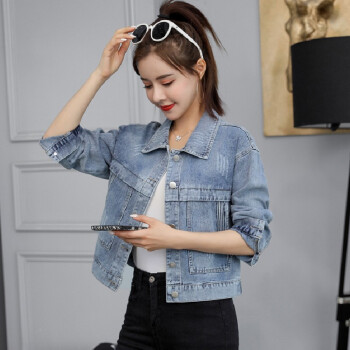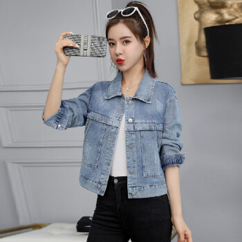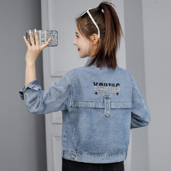 阿顿资短外套女学生牛仔春秋2020新夹克款韩版宽松时尚洋气短款简约英文刺绣上衣潮 8752 图片色 M |