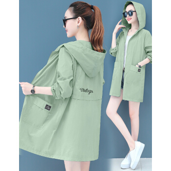 婪澈防晒衣女2020女装夏季新款女士大码中长款风衣外套女韩版洋气中年妈妈薄款防晒服衫 豆绿色 请拍正确尺码 |