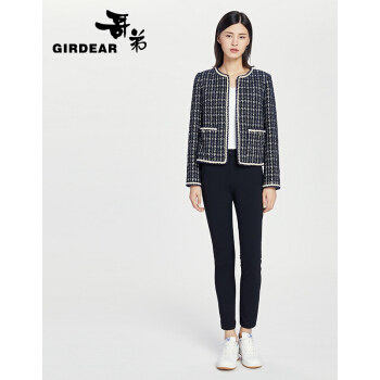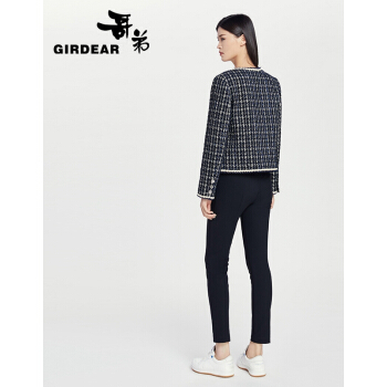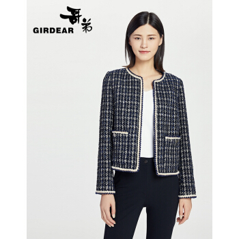 哥弟女装2020秋季新款名媛气质小香风上衣轻熟圆领外套女A400476 藏蓝 S(2码) |