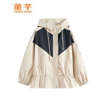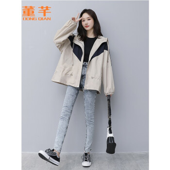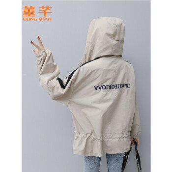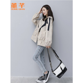 董芊 短外套女休闲风衣2020年春季新款韩版宽松短款大衣外套春秋中长款小个子 杏色 S |