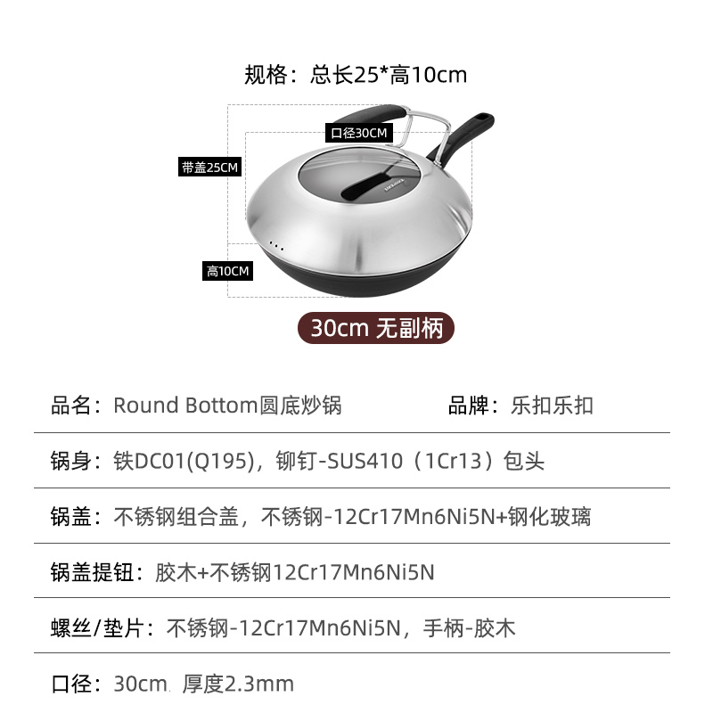 煤气灶无涂层炒菜锅30CM【铁/图片色】 |