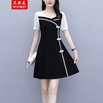 尼熙美 大码女装胖mm2020夏装新款胖妹妹气质宽松显瘦遮肚子小黑裙加肥加大小香风旗袍遮肉连衣裙 黑色 3XL 建议145-160斤 |