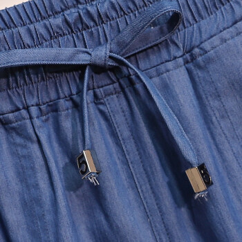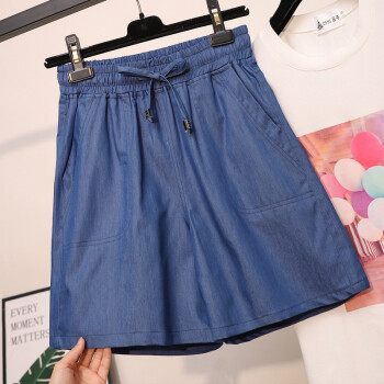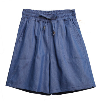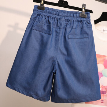 木棉林加肥加大码女装2020夏装新款冰丝五分大码牛仔短裤松紧腰薄宽松阔腿清凉胖MM热裤HYA47 蓝色 5XL(建议160-200斤) |
