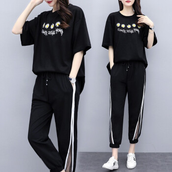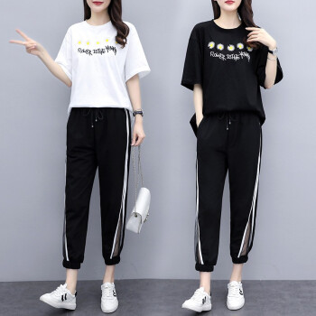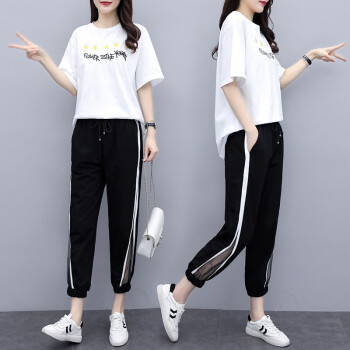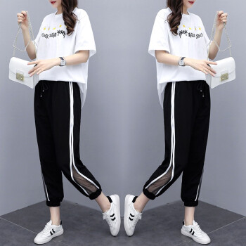 睡妍 大码女装套装女夏2020夏季新品宽松显瘦加肥加大码胖mm短袖T恤九分裤休闲运动套装两件套女夏 白色 XXL(120-140左右) |