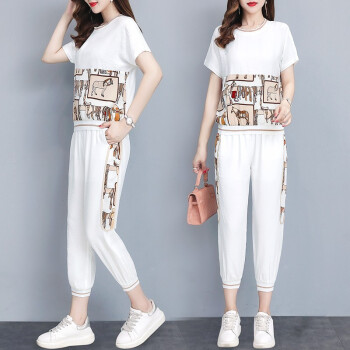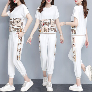 睡妍 大码女装套装女夏2020夏季新品韩版时尚套装减龄洋气宽松显瘦九分裤短袖休闲运动套装两件套女夏 黑色 L(98-110左右) |