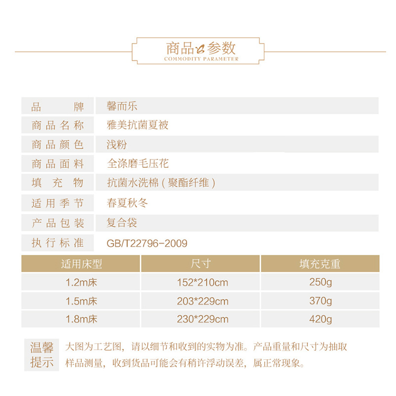 雅美抗菌夏被(被芯1件)(适合1.5米床)【面料:聚酯纤维;填充:聚酯纤维/粉色】 |