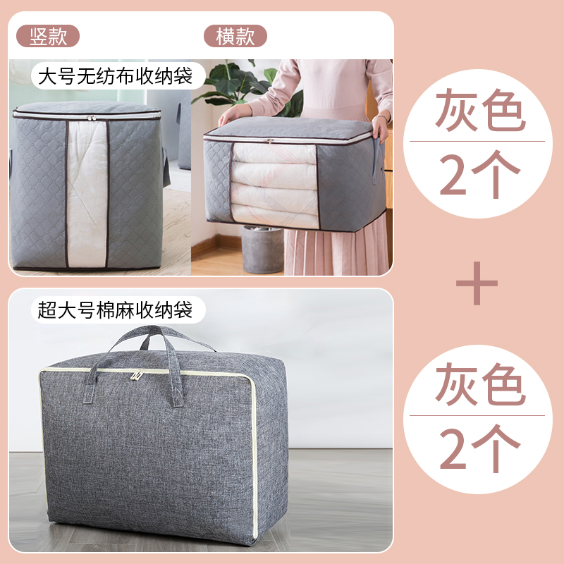 衣服棉被收纳袋4个【无纺布+棉质/灰色】 |