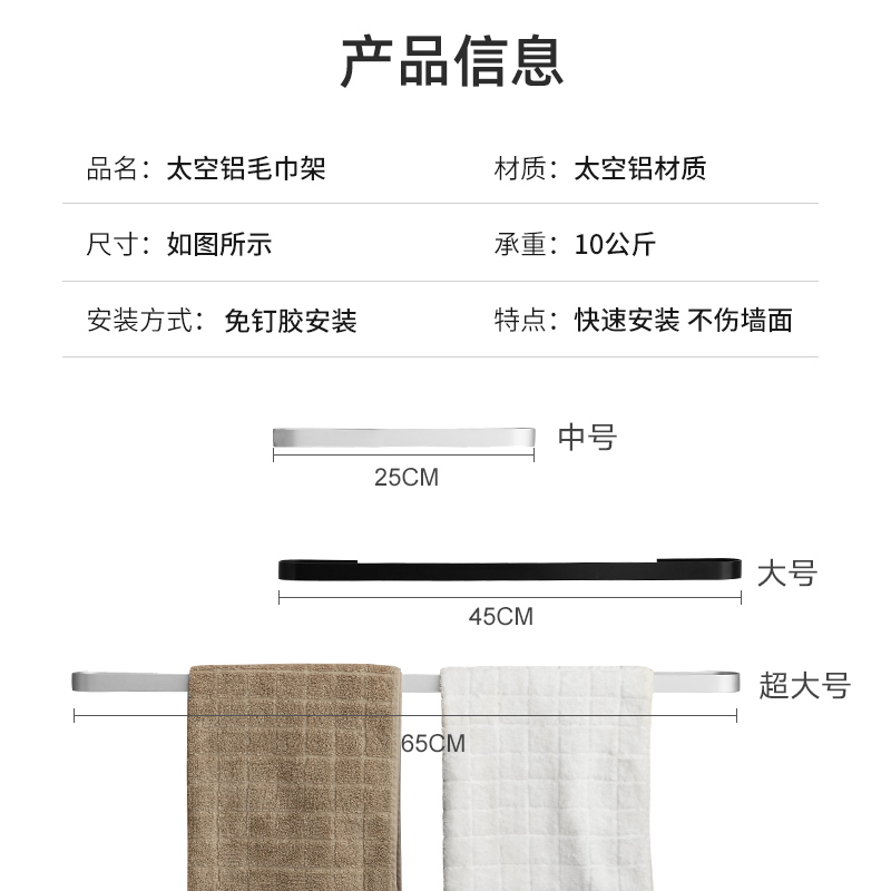 太空铝毛巾架大号3个【太空铝/颜色自选】 |