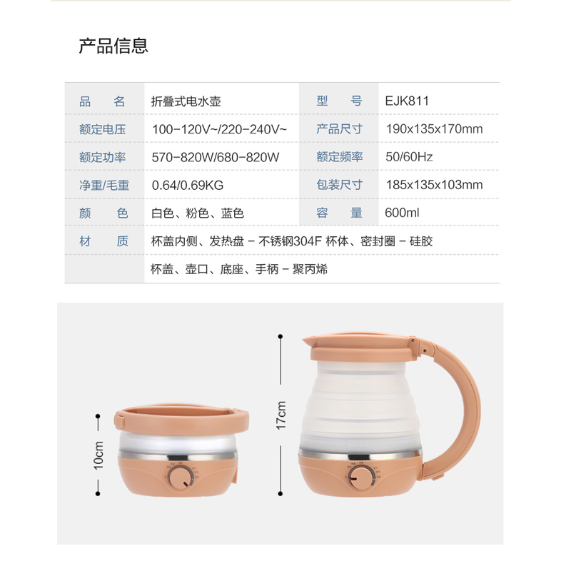 乐扣乐扣可折叠式电热水壶-0.6L【食品级硅胶+PP材质/颜色自选】 |