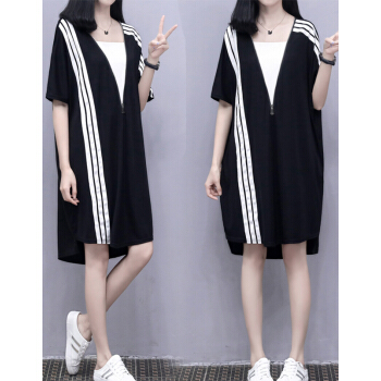 婪澈连衣裙女2020夏装新款大码女装拉链宽松显瘦运动休闲卫衣裙T恤裙 图片色 请拍正确尺码 |