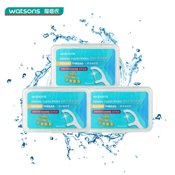 屈臣氏 圆线护理牙线棒50支X3盒 清洁齿缝家庭装超细便捷 |