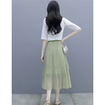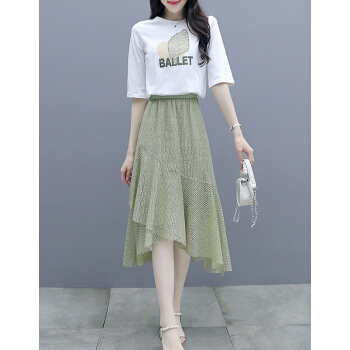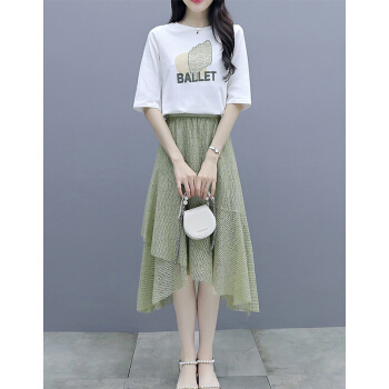莱倪晟纳短袖连衣裙女装2020夏装新款韩版宽松显瘦气质女神范两件套装中长裙子 绿色 请拍正确尺码 |