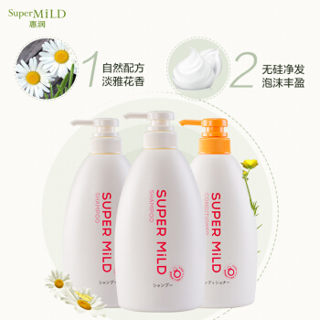 资生堂惠润(SUPER MiLD) 柔净鲜花芳香 洗护套装(洗发露600ml*2+护发素 600ml)(日本进口洗发水) |