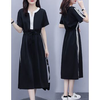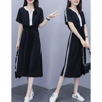 婪澈连衣裙女2020年女装夏季新款遮肚子显瘦洋气大码女装胖妹妹时尚收腰中长款连衣裙女 图片色 请下正确尺码 |