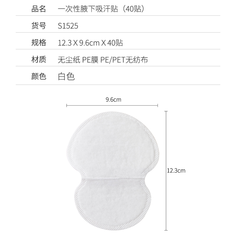 一次性腋下吸汗贴(40贴)【无尘纸 PE膜 PE/PET无纺布/图片色】 |