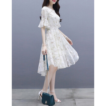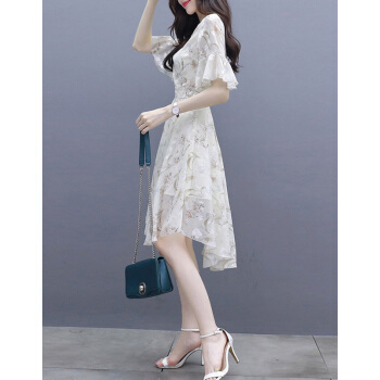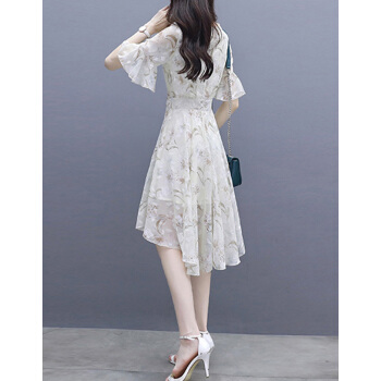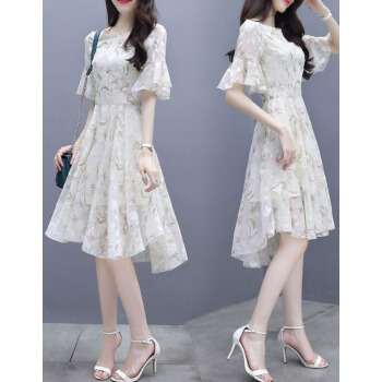 莱倪晟纳夏季女装连衣裙新品裙子女夏2020年新款韩版中长款时尚性感显瘦印花两件套装沙滩裙 米白色 请拍正确尺码 |