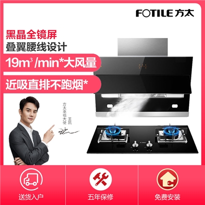 JQC2+TH33B 一键瞬吸 19m3/min大风量* 每日换气 4.2KW*大火力 烟灶套装【钢化玻璃/黑色】 |