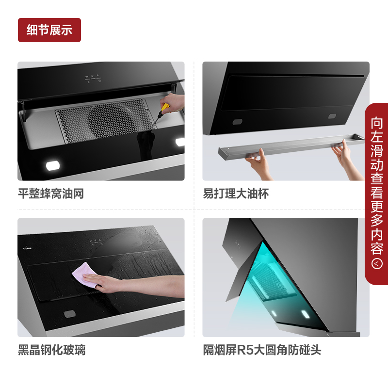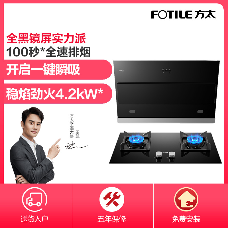 JQC5+HT9BE 一键瞬吸 每日换气 19m3/min大风量* 4.2KW*大火力 烟灶套装【钢化玻璃+不锈钢/黑色】 |