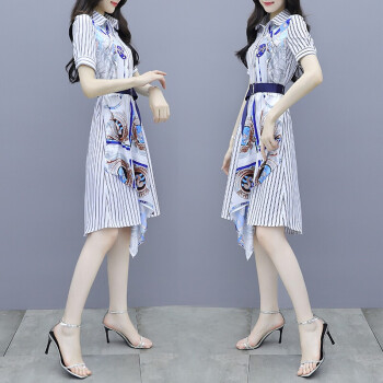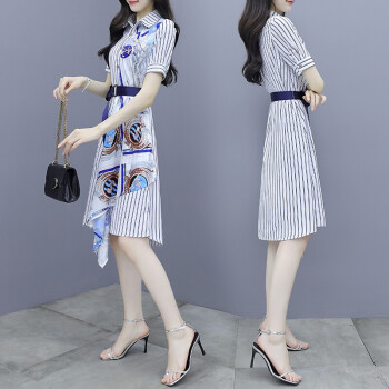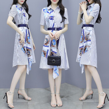 莱倪晟纳短袖连衣裙新品2020夏季新款韩版时尚宽松显瘦气质减龄两件套装沙滩裙子 上衣+裙子 请拍正确尺码 |