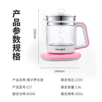 格子GZ-C17 养生壶全自动玻璃多功能电热花茶壶家用煮茶器办公室小型电热水壶家用煮水壶玻璃养身茶壶 樱花粉C17 |