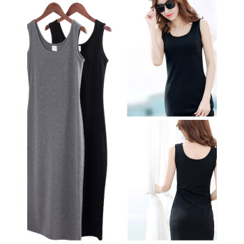 BABIBOY 吊带连衣裙女中长款2020夏季新款吊带背心时尚女装修身显瘦洋气无袖裙子 黑色 M |