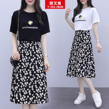 茵艾曼女装连衣裙女修身显瘦夏季2020新款小雏菊流行套装裙子泫雅风碎花两件套装小个子 A268白色 L《107-117斤》 |