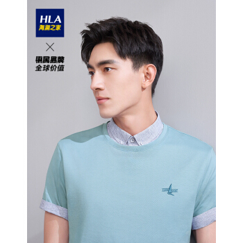 HLA海澜之家前胸绣花短袖T恤2020夏季新品圆领棉质男白色半袖t恤HNTBJ2Q072A 浅蓝71 175/92A/L |