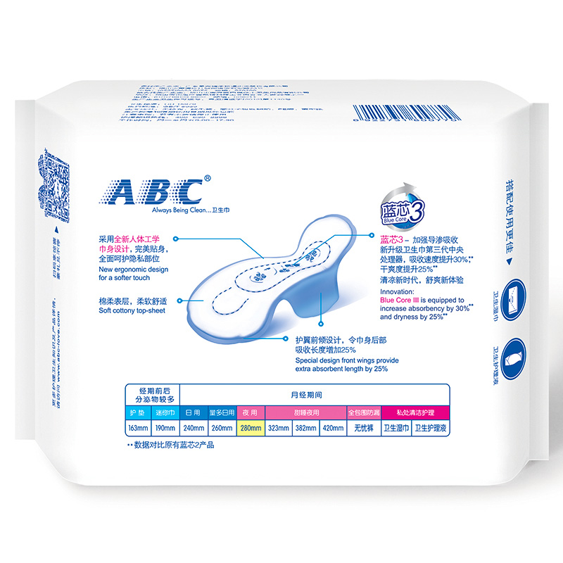 ABC纤薄夜用棉8片 |