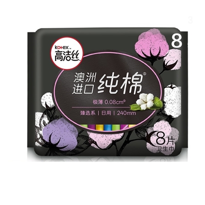 高洁丝极薄纯棉卫生巾日用8片 女性卫生用品 |