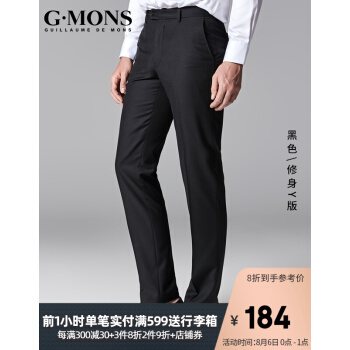 吉约蒙(G·MONS)西裤男修身正装商务休闲男士西装裤子男韩版百搭职业结婚新郎伴郎西服裤子男商场同款 黑色-修身版 32码(2尺5) |