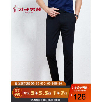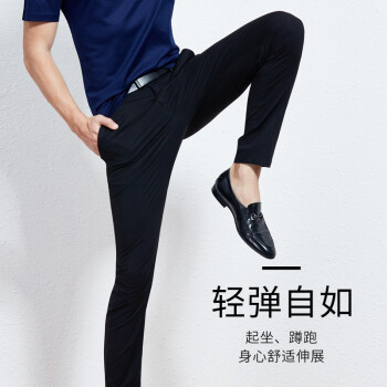 才子男装2020春秋季新品纯色修身微弹百搭易打理时尚商务休闲西裤男士 黑色 32/82cm |