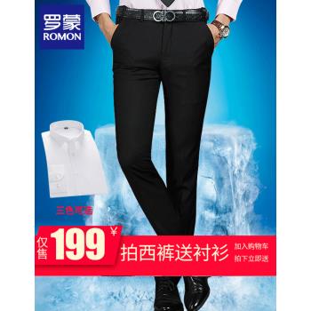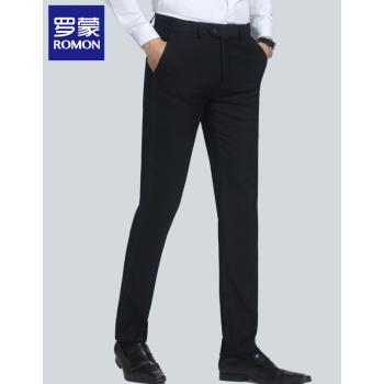 罗蒙 西裤男夏季修身薄款商务新款韩版正装裤男黑色青年休闲裤工装西装裤子 黑色薄款【西裤+衬衫】 32 |