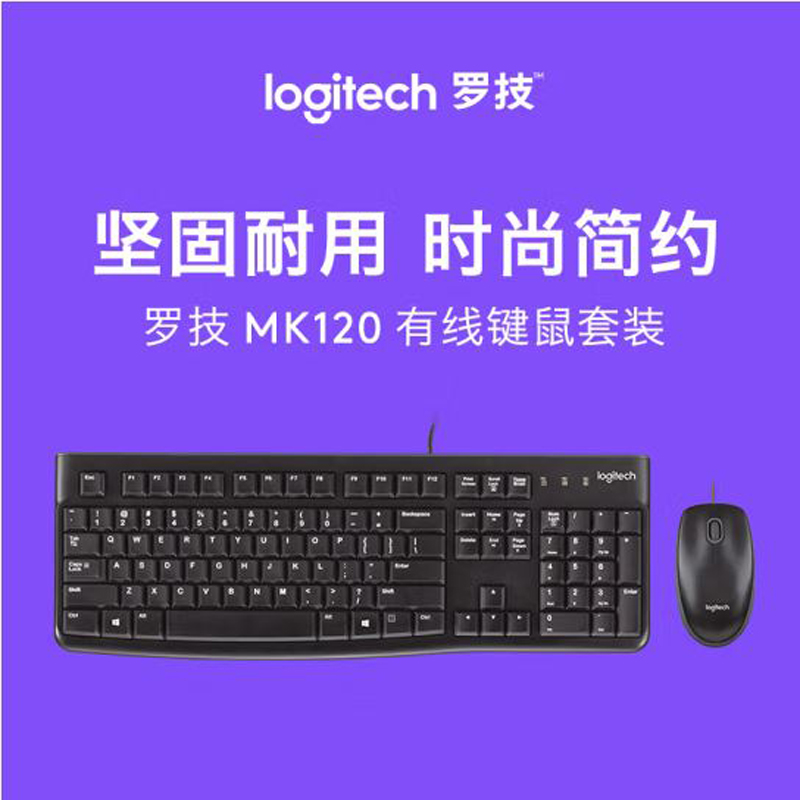 罗技(Logitech)MK120 键鼠套装 有线键鼠套装 办公键鼠套装 电脑键盘 笔记本键盘 联想全尺寸 黑色 |