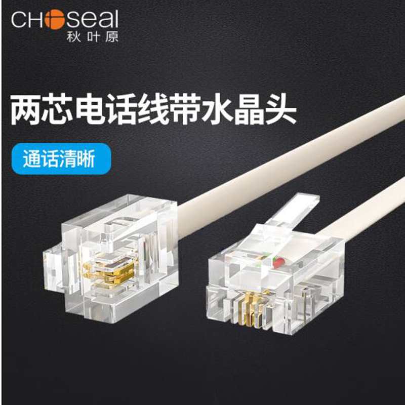 Choseal/秋叶原 Q102 二芯电话跳线RJ11电话机连接线镀金 2芯 白色 5米 |