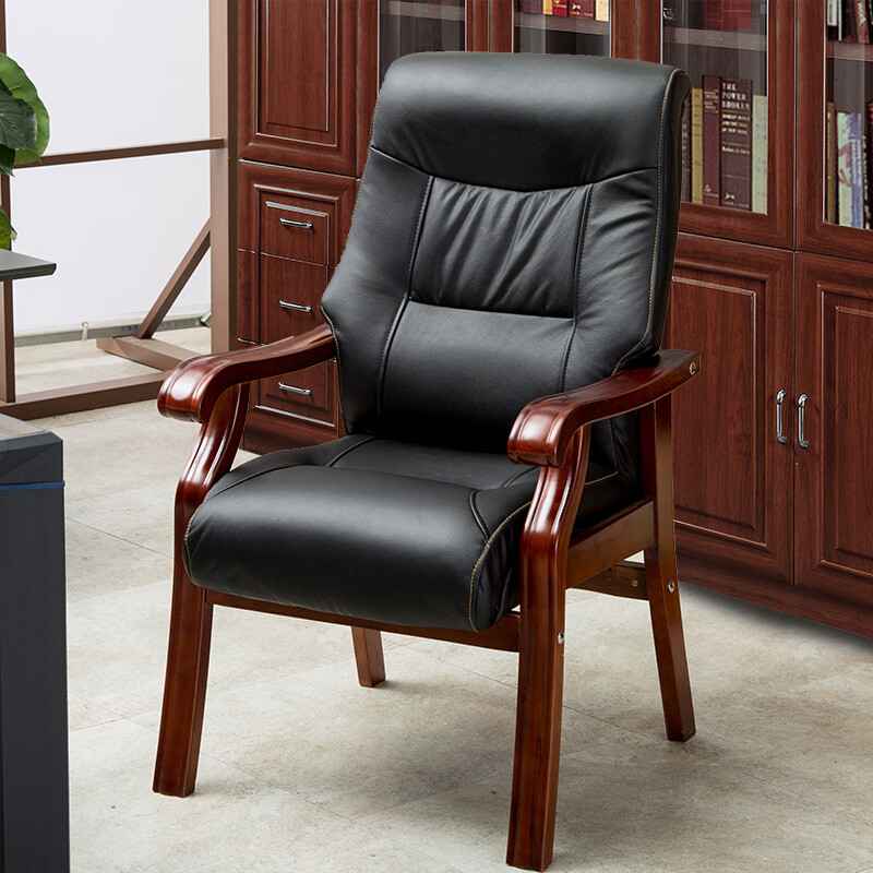 众琛 办公椅会议椅子实木家用真皮牛皮麻将椅子电脑椅老板椅大班椅 黑色皮+小广扶手 环保PU皮 |
