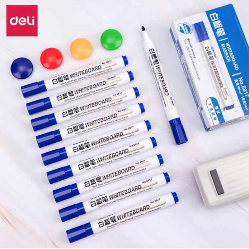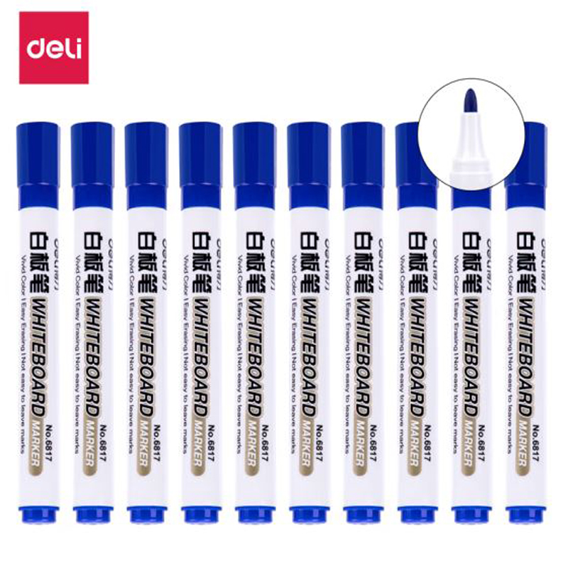 得力(deli)白板笔 色泽明亮可擦易擦蓝色10支/盒 6817 办公用品 |