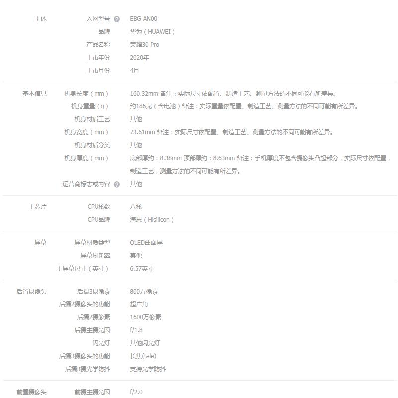 华为荣耀30 pro 全网通版8GB+256GB【其它/B-1】 |
